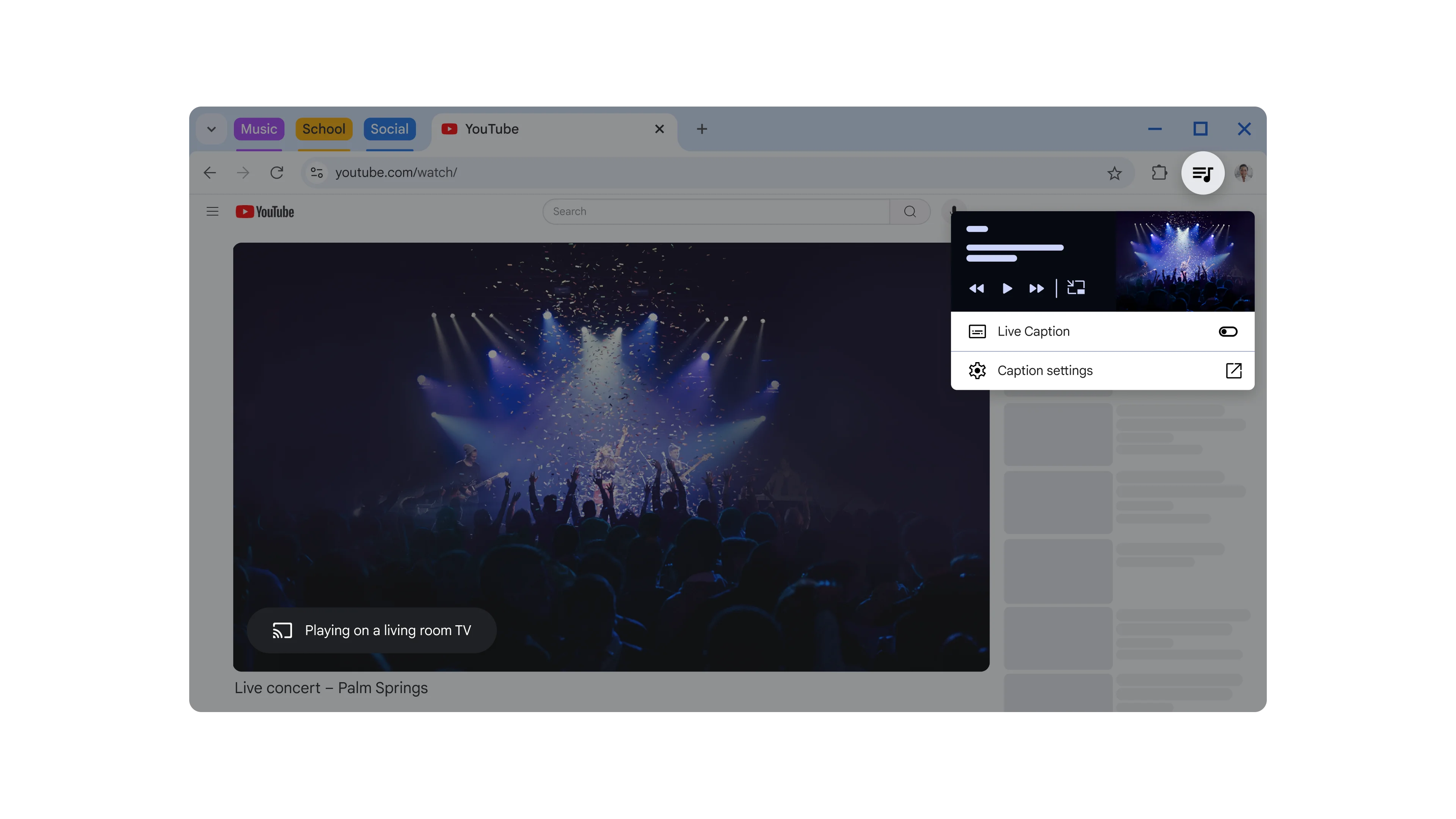 Chrome supports screen readers and magnifiers and offers full-page zoom, high-contrast color, AI image descriptions, live captioning, keyboard browsing, and more — making it easier than ever to surf the web in a way that works for you.
